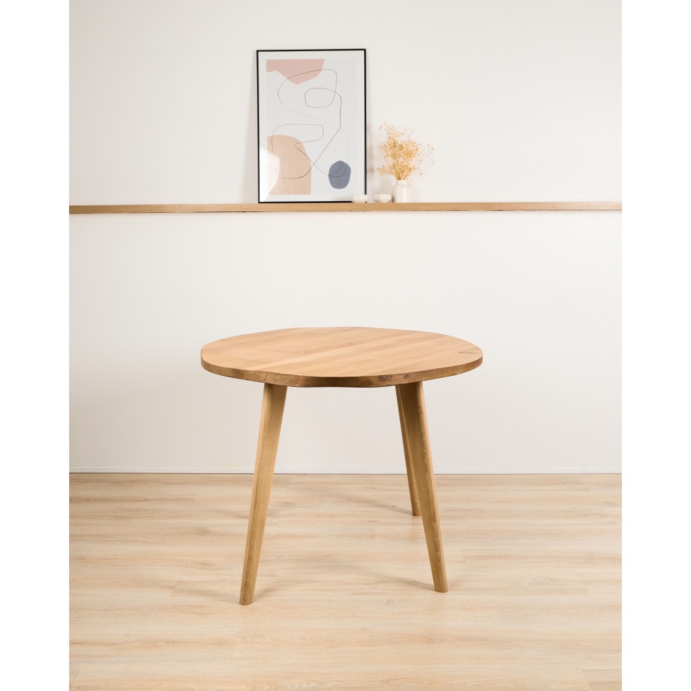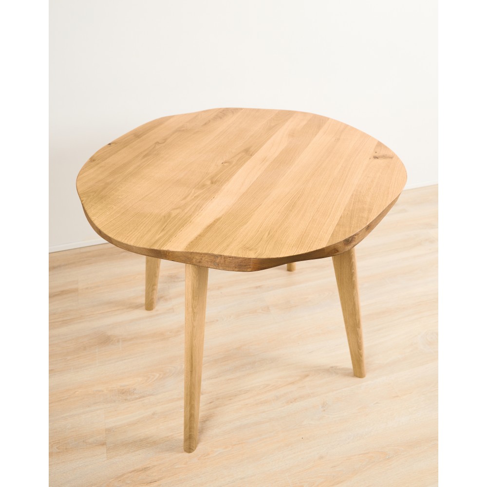 Столешница: Инженерный массив (основа — сосна, верхний слой — шпон дуба) с неровным натуральным краем.
