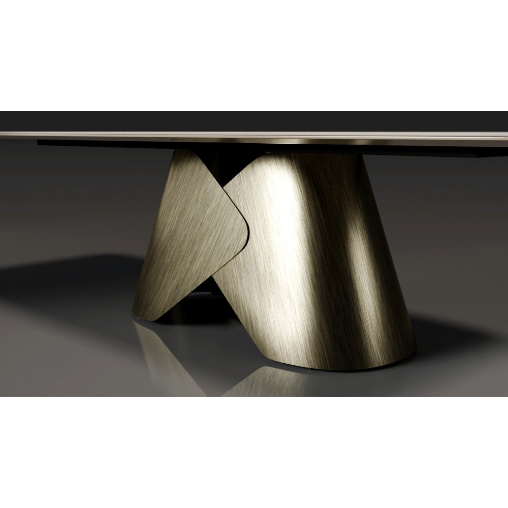 Столешница выполнена по технологии «сэндвич»: надежная основа из МДФ и верхний слой из испанской керамики — эталона качества и долговечности. Испанская керамика не боится царапин, высоких температур, влаги и химических средств, сохраняя безупречный вид десятилетиями. МДФ по периметру окрашивается эмалью в цвет опор, создавая гармоничный и целостный образ.